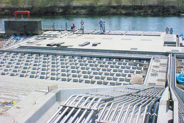 ゴミ溶解設備施設冷却水槽(チェーンコンベア)